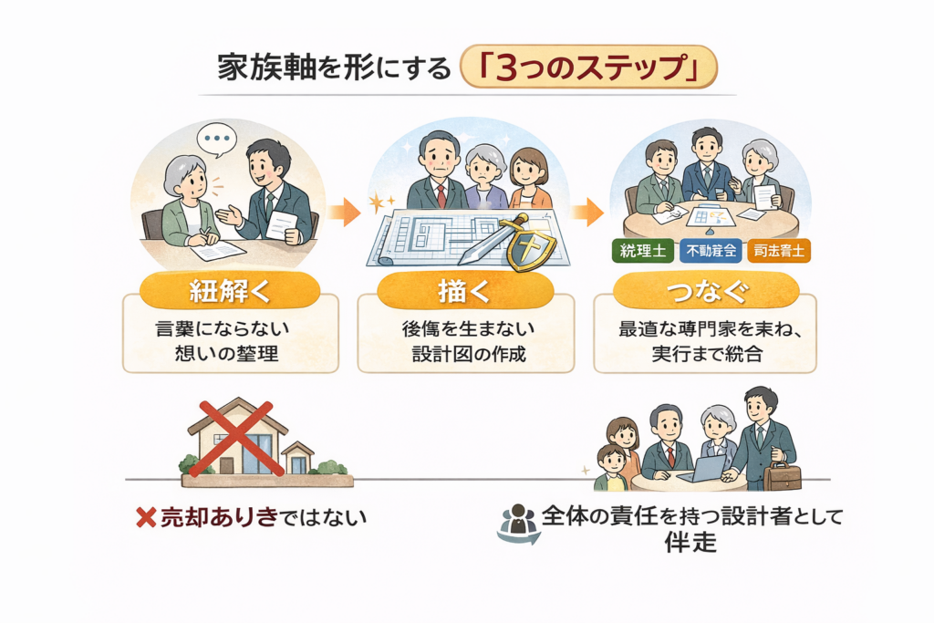まずは、あなたやご家族の「まだ言葉になっていない想い」を丁寧に紐解く。